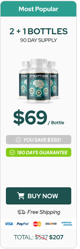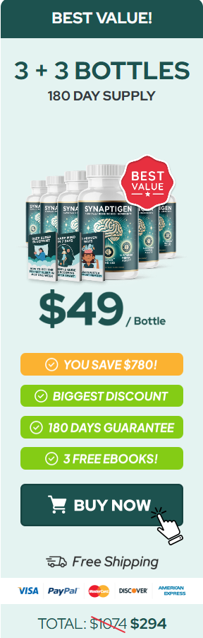 At this moment you can order Synaptigen supplement for 38% OFF + FREE Shipping. This is a Limited-Time Offer and it won’t be available for long.