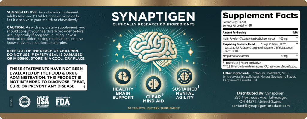 Therefore, Synaptigen should be seen as an investment in cognitive longevity. It is the ideal choice for those seeking lasting mental clarity, consistent mental energy, and a robust memory, all through a natural, scientifically grounded approach that begins in the gut.